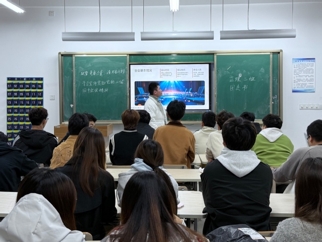 团课伊始,团支书首先阐述了党的二十届四中全会召开的重大意义。她结合精心准备的课件讲解了全会提出的新思想、新论断、新要求,特别是关于推动高质量发展等方面的内容。她注重理论联系实际,将宏大的国家政策与同学们的学业规划、未来发展相结合,引导大家思考个人成长与时代发展的同频共振,深化了大家对全会精神的理解。在团支书的引导下,同学们踊跃发言,分享学习心得,并就“如何将全会精神落实到日常学习与工作中”等话题展开了热烈讨论。大家一致认为,要将学习成果转化为勤奋学习、积极实践的内在动力,不断提升自身能力,勇担时代重任。