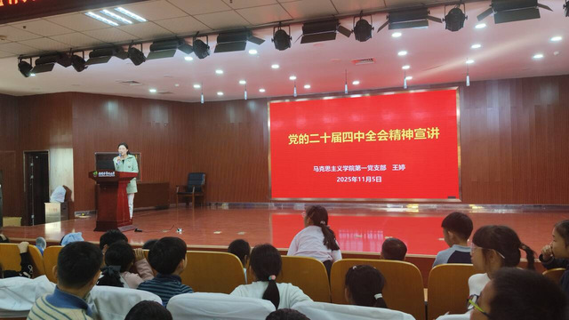 理论宣讲环节,党史研习社指导老师王婷以“生命至上”为核心主题,深度解读党的二十届四中全会精神。她紧密结合全国消防宣传月主题与本次活动实践,从制度保障层面阐释“生命至上”的政策内涵,从教育实践层面分析校园安全育人的实施路径,从党员担当层面提出“守护师生安全”的行动要求,通过“理论+案例”的方式让宣讲内容更接地气、更具感染力。