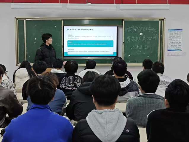 活动伊始,团总支结合社会典型火灾案例,深刻剖析隐患滋生的根源与危害,系统讲解火灾预防、初期扑救、疏散逃生等核心知识,重点聚焦宿舍用电安全、消防器材操作规范等青年高频场景。通过案例复盘、情景模拟、互动问答等形式,引导同学们主动排查身边安全隐患,深刻领悟“消防无小事,责任大于天”的内涵,将安全意识内化为行动自觉,让青春担当在守护公共安全中落地生根。