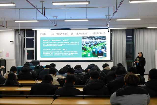 讲座中,季小燕副处长凭借其北京师范大学应用心理学(生涯规划方向)硕士的专业背景及多年一线工作经验,系统阐述了职业生涯规划的核心理论与实用工具。她结合生动的案例,深入讲解了如何科学进行自我认知、职业探索与决策定位,并分享了在当前就业形势下提升职业竞争力、实现高质量就业的具体策略。她特别强调了主动规划与心理调适的重要性,其兼具专业深度与实践指导性的分享内容,引发了在场学生的深刻共鸣与积极互动。