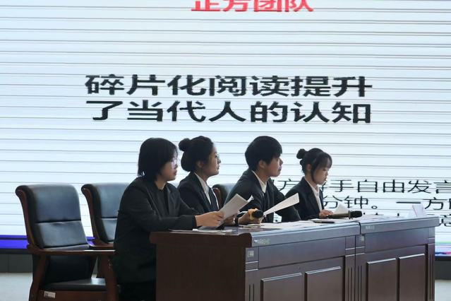 首场比赛,“碎片化阅读提升还是降低了当代人的认知水平”一题,便点燃战火。正方以信息触手可及为盾,反方以思维深度缺失为矛,双方在“广度”与“深度”之间展开拉锯,为全场奠定思辨基调。
