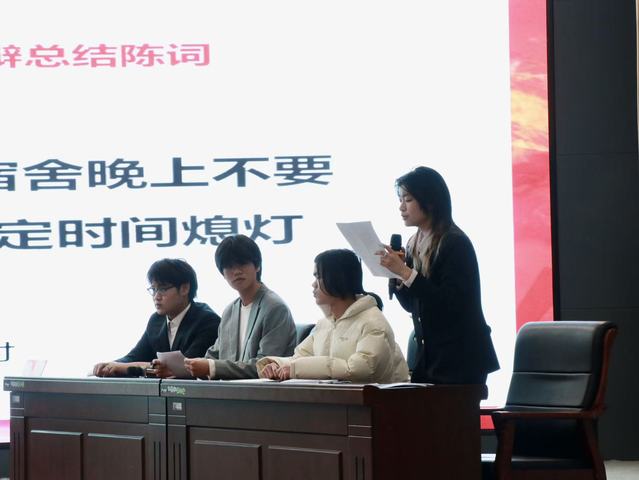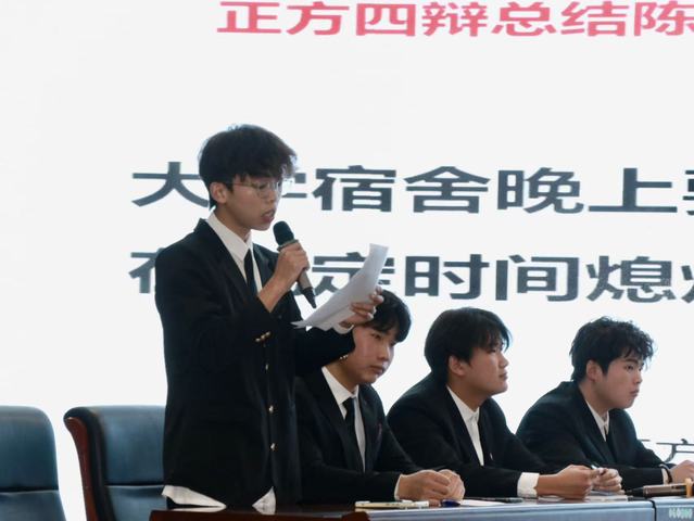 最后一场,“大学宿舍晚上是否应在规定时间熄灯”的辩题,将思考拉回校园日常。正方强调集体作息与纪律养成,反方主张个性需求与弹性管理。双方从学生实际出发,论证扎实,展现了学子参与校园治理的理性思考。