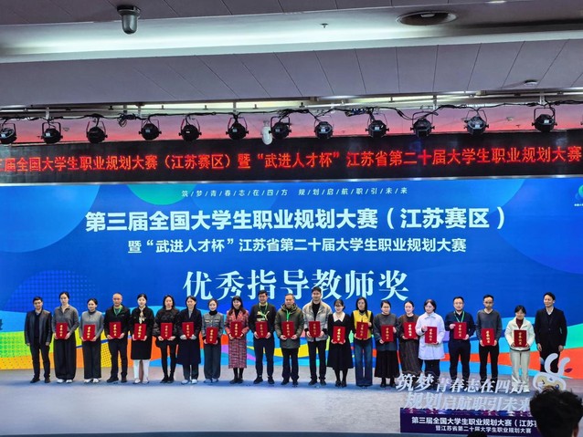 近日,由江苏省教育厅主办,省高校招生就业指导服务中心联合河海大学、南京师范大学、南京中医药大学、南京工业职业技术大学四所高校共同承办的江苏省第二十届大学生职业规划大赛圆满落幕。经过层层选拔与激烈角逐,我院学子斩获金奖1项、银奖1项,乔成诚老师获评“优秀指导教师”,创下我校在该项赛事中的历史最佳成绩。