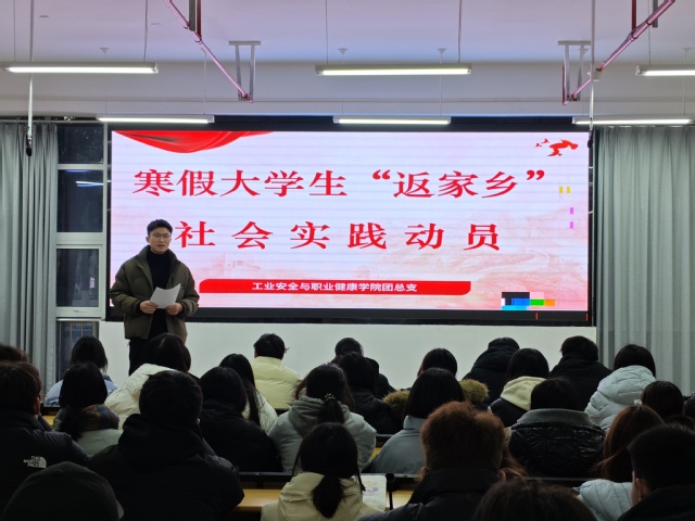 为引导青年学子深入社会、服务家乡,工业安全与职业健康学院于2026年1月8日在图文楼101召开2026年寒假大学生“返家乡”社会实践动员大会。动员大会由学院团总支书记黄健钦主持,各班学生干部以及团总支学生会代表参加。