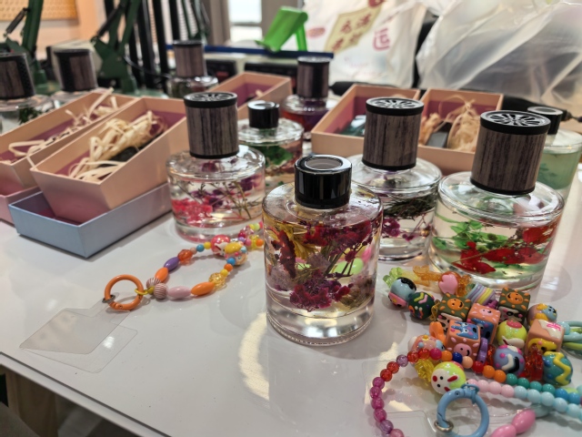 活动现场温馨雅致,各类精油、蜡材、干花、串珠等丰富材料整齐摆放,大家在轻松的氛围中自由探索创作。在制作香水与香薰时,女职工们手持滴管精准配比,将干花点缀与精油调配巧妙结合,把专属心意凝于瓶中;制作手机链时,五彩珠子、可爱挂坠在指尖穿梭,大家围坐交流,在穿珠引线间勾勒巧思,串起独一无二的精致饰品。