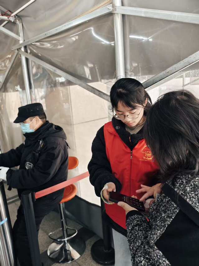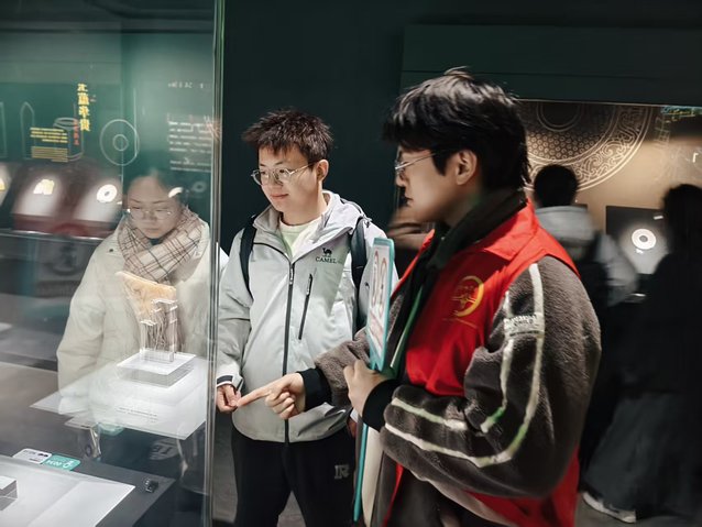 活动中,志愿者们听从场馆工作人员统一调度,分工协作、各司其职。在展厅入口、参观通道、咨询服务台等区域,他们化身“文明引导员”“秩序维护员”“咨询讲解员”,耐心解答游客疑问,细心疏导参观人流,及时提醒文明观展。一抹抹忙碌的“志愿红”穿梭于历史文物之间,用热情和细致为市民营造了有序、舒心、文明的参观环境,也展现了当代学子昂扬向上、乐于奉献的精神风貌。