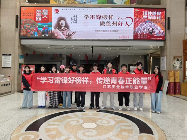 为深入践行雷锋精神,弘扬“奉献、友爱、互助、进步”的志愿风尚,3月10日,工业安全与职业健康学院组织12名学生志愿者走进徐州博物馆,开展主题志愿服务活动。他们身着红马甲,用真诚的服务为春日增添一抹温暖的“锋”色,以实际行动书写新时代的雷锋故事。