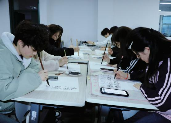 为传承中华优秀传统文化,缅怀革命先烈与先辈先贤,弘扬书法艺术魅力。参与活动的学生们纷纷铺纸研墨,提笔创作,围绕清明哀思、家国情怀、经典诗词、家风家训等主题尽情挥洒笔墨。创作过程中,同学们默契配合,相互交流运笔技巧与字形结构处理方法,有人专注调整笔墨浓淡,有人细心推敲文字布局,在沉浸式创作中感受书法艺术魅力,也加深了对传统节日文化的理解。