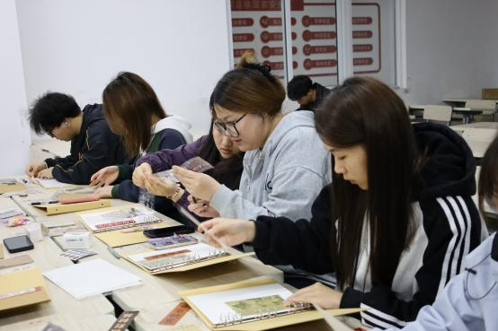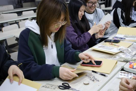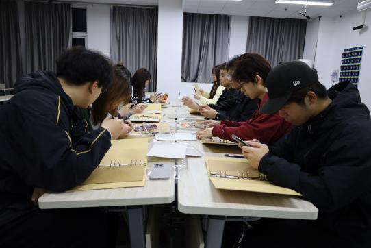 活动现场氛围温馨热烈,同学们充分发挥创意,以纸张为底,搭配彩笔、贴纸、胶带、印章等材料,精心排版、细心书写、耐心装饰。大家围坐交流,分享阅读心得与创作思路,在互动中碰撞灵感。有的摘录经典名句,融入古风元素,尽显书卷雅致;有的结合青春感悟,搭配手绘图案,让手账兼具个性与温度。一本本精致手账,将抽象的阅读体验转化为具象的创意作品,既展现了同学们的审美与巧思,也让文字之美、阅读之乐被看见、被触摸、被珍藏。
