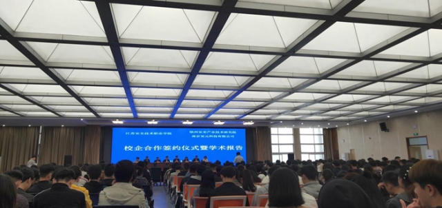 4月22日,我院举办与徐州安全产业技术研究院、南京安元科技有限公司校企合作签约仪式。院长徐建春发表讲话并代表学院与企业签约,副院长任国兴,安全系领导班子,云龙校区中层干部及相关教师参会,会议由副院长李桂萍主持。本次仪式由安全系承办,招就处,教务处配合,在云龙校区办公室和团委的大力协助下,获得圆满成功。