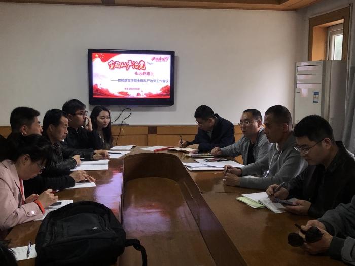 为认真贯彻江苏安全技术职业学院全面从严治党工作会议精神,进一步落实全面从严治党主体责任,4月23日下午,安全工程系在新疆公寓二楼会议室召开贯彻落实学院全面从严治党会议精神工作会。会议由党支部书记李志浩主持,全体教师参会。