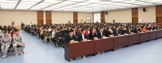大会开始于16时,会议由党委副书记孙健身主持。院领导徐建春、孙健身、吴如根、任国兴、成伯君、李桂萍、党委委员薛莲出席大会。大会在座成员有团委、学工处、教务处及各系部相关负责人、辅导员和青年师生代表700余人。在宣布大会开始后,奏响国歌,在座成员全体起立,会场一片庄严肃穆。
