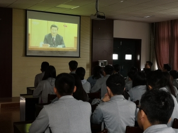 纪念五四运动100周年大会于4月30日十点三十分钟在北京人民大会堂隆重举行,中共中央总书记、国家主席、中央军委主席习近平出席大会并发表重要讲话。为了认真学习习近平总书记讲话精神、使青年学生深刻认识五四运动的历史意义、发扬伟大五四精神,安全工程系团委组织主要学生干部观看大会直播,活动由系部金华主任以及学管老师组织参与。